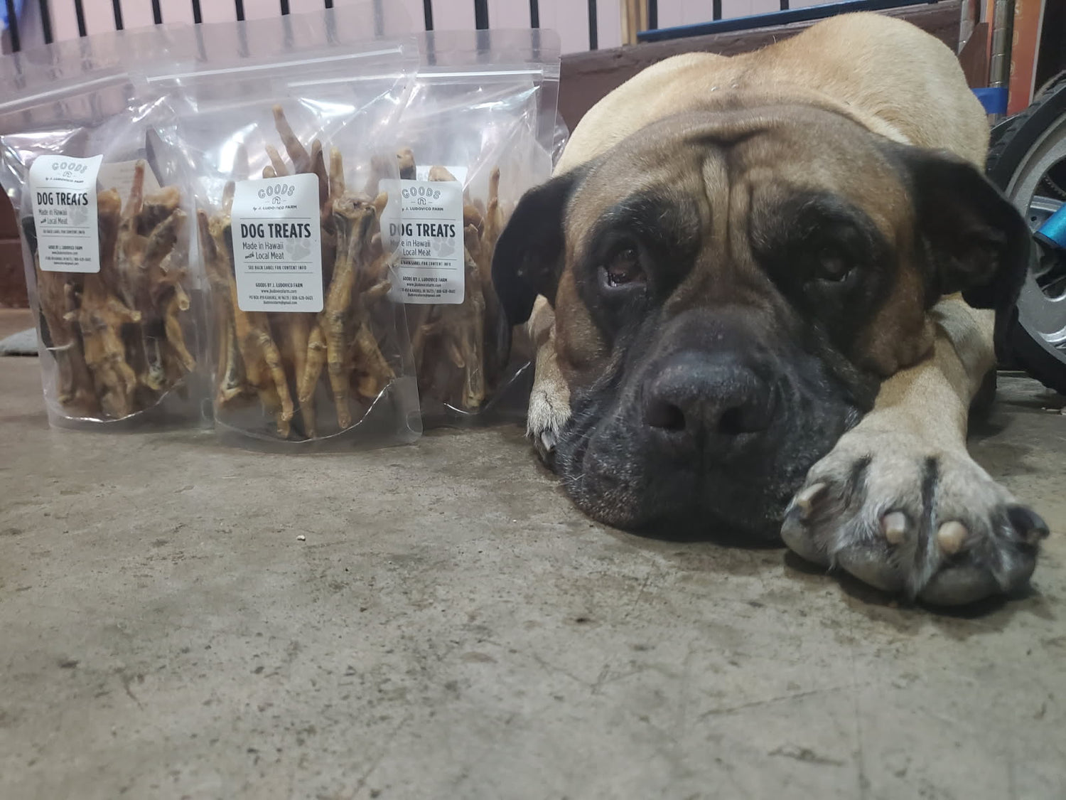 Our treats are created for your dog's happiness and health. Made from our pasture raised farm fresh chicken.