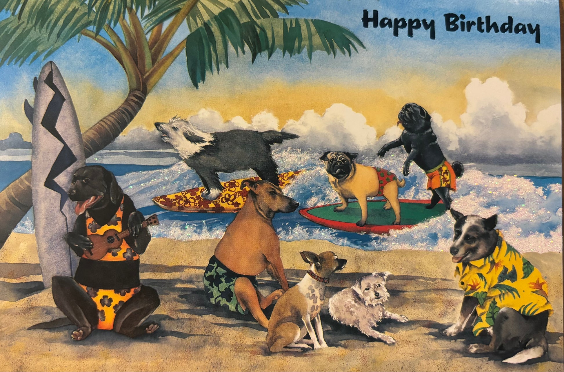 7x5 Cute dogs hanging out and surfing.